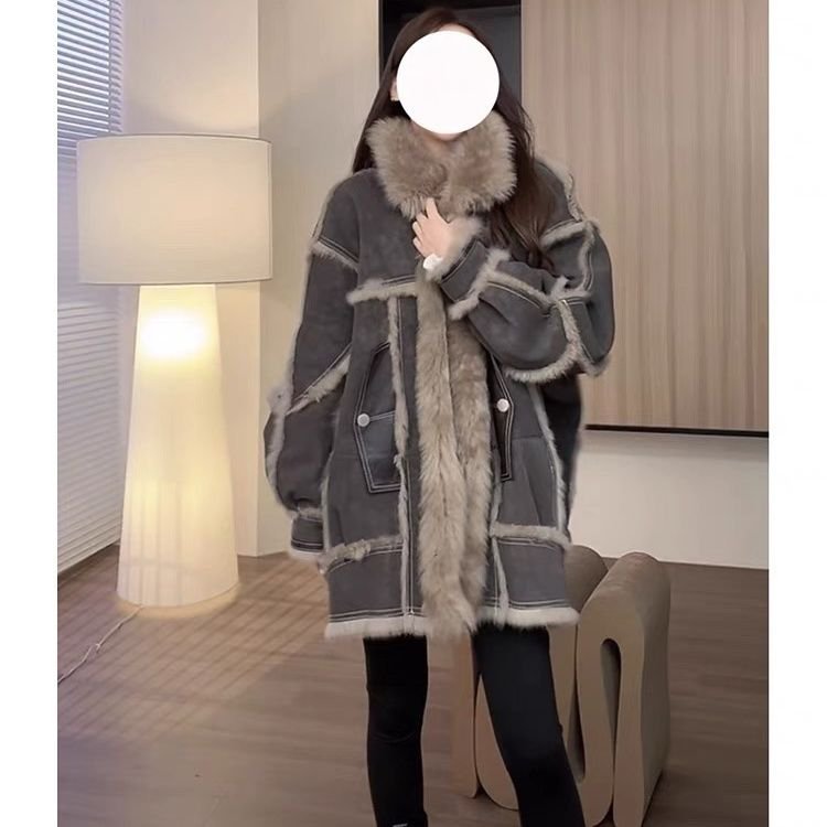 여성용 모피 일체형 패치워크 만능 코디 코트